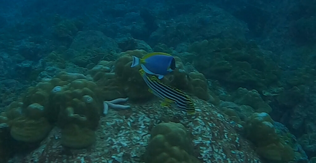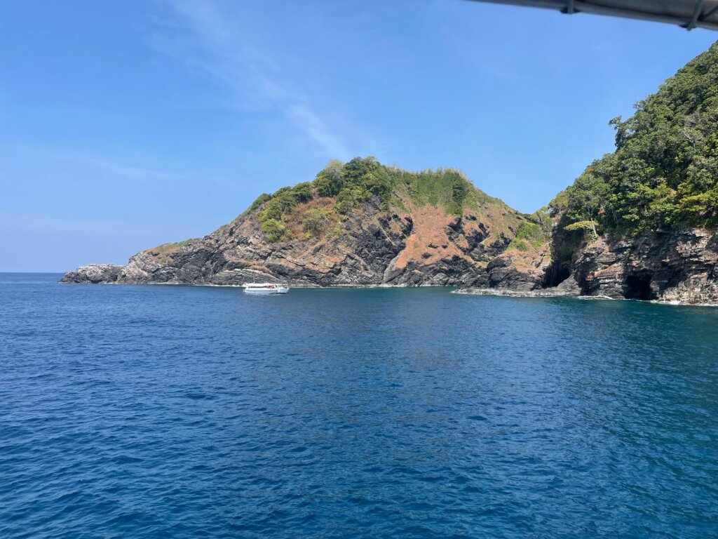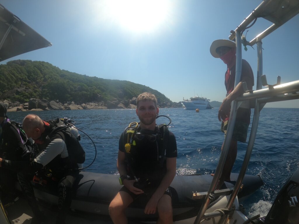 Our first dive site was Tachai Reef. It looked as if we were in the middle of the ocean, with a small island that we would be diving around. The first skill we would be doing was… the deep dive. So, we would go to our maximum depth as Advanced divers – 30 meters or ~100 feet deep. My Open Water only certified me to 18 meters, so this was almost double that. I had always wondered if I would find it scarier, etc. But in the end, it was fine.