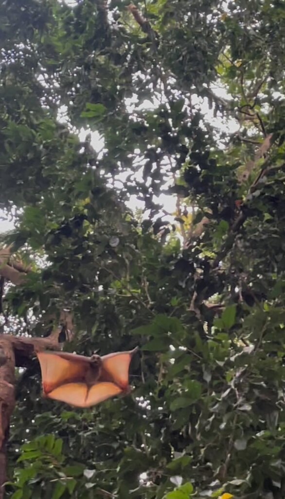 “Wouldn’t it be cool if one of them just flew from one tree to the other?” somebody said. We were all thinking it. And then, as if summoned, one of them started stirring. First, it peed, and then it started hopping higher up along the tree. After so much dormancy, I had a feeling something cool was going to happen. I started filming.
