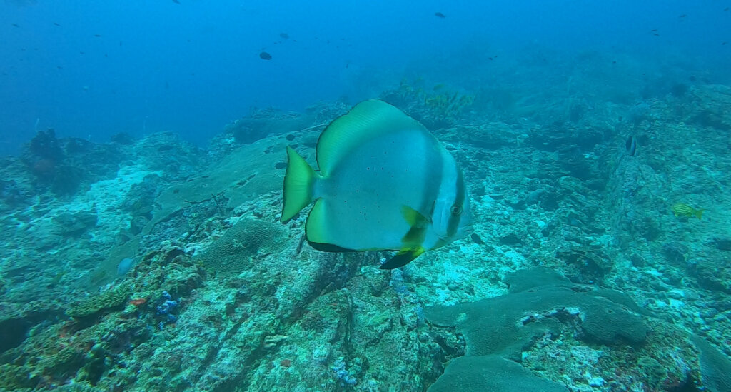 For our second and third dives, we dove at Batfish Rock, so named for the plentiful batfish that once inhabitated the dive site. While there were some, there weren’t as many as there used to be, apparently. Although, I saw a bunch of batfish throughout my time diving in the Andaman Sea, to be fair.