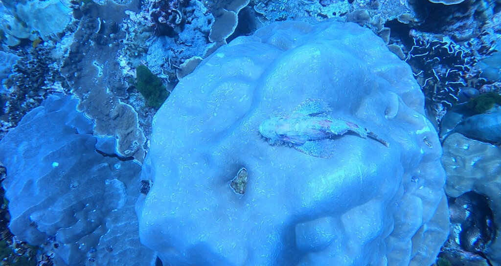 But, we survived. Pang was able to spot a white tip reef shark resting under some coral. And during the same dive, we briefly saw a black tip reef shark swimming off in the distance. Cool!!! Those were the only sharks I saw during the seven day trip. Bummer! I wish I’d been able to see more (and with my GoPro) but alas. We also saw a stingray and… a teeny, tiny seahorse! Seahorses are a total treat for me because I have only seen them once before going on the liveaboard.