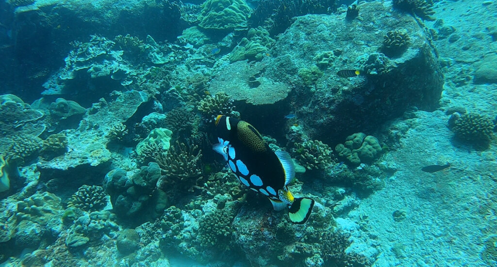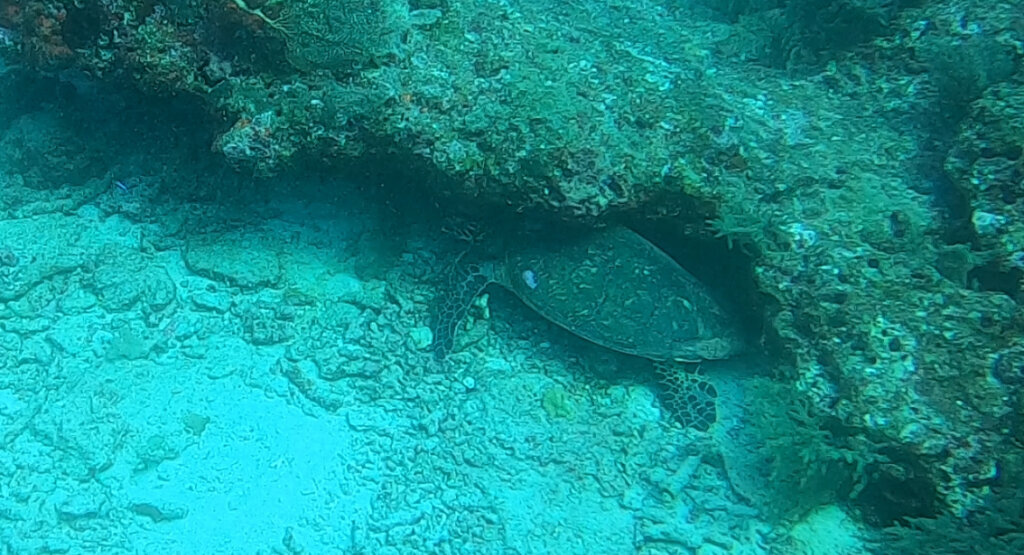 In between dives, we were greeted by a sea turtle who visited the boat along the surface. The crew told us people used to feed the turtles and so he still comes religiously. I saw one of the guests toss a piece of banana into the water… so apparently, the turtle continues to get fed, hence why it visits the boat. I hope it is still able to find food on its own and doesn’t rely 100% on guests tossing food into the water. Sigh.