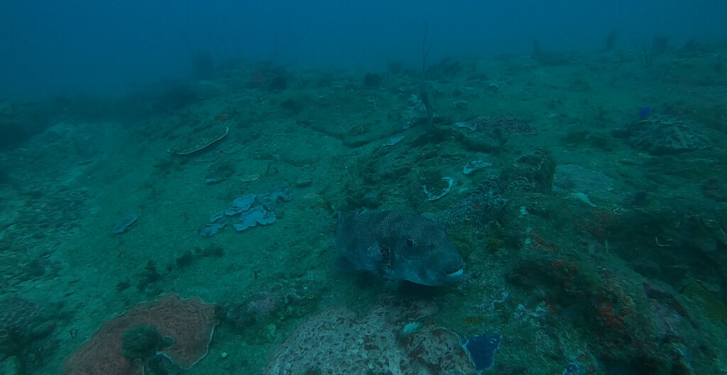 We had two dives at Koh Bon. On the second dive, I actually ended up getting cleaned by a cleaner wrasse hahaha. I felt a tug on my ear and when I looked behind me, I saw two little cleaner wrasse swirling around me. Cute! At the end of the dive, we spotted a big, friendly porcupinefish. I really love those guys. They have such goofy faces and sometimes they get awfully close. Pufferfish, too.