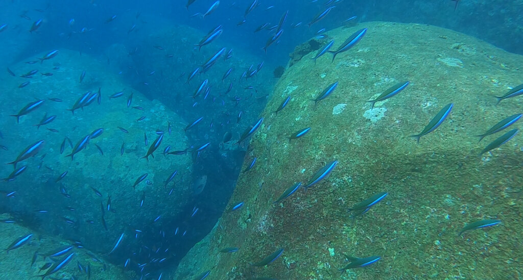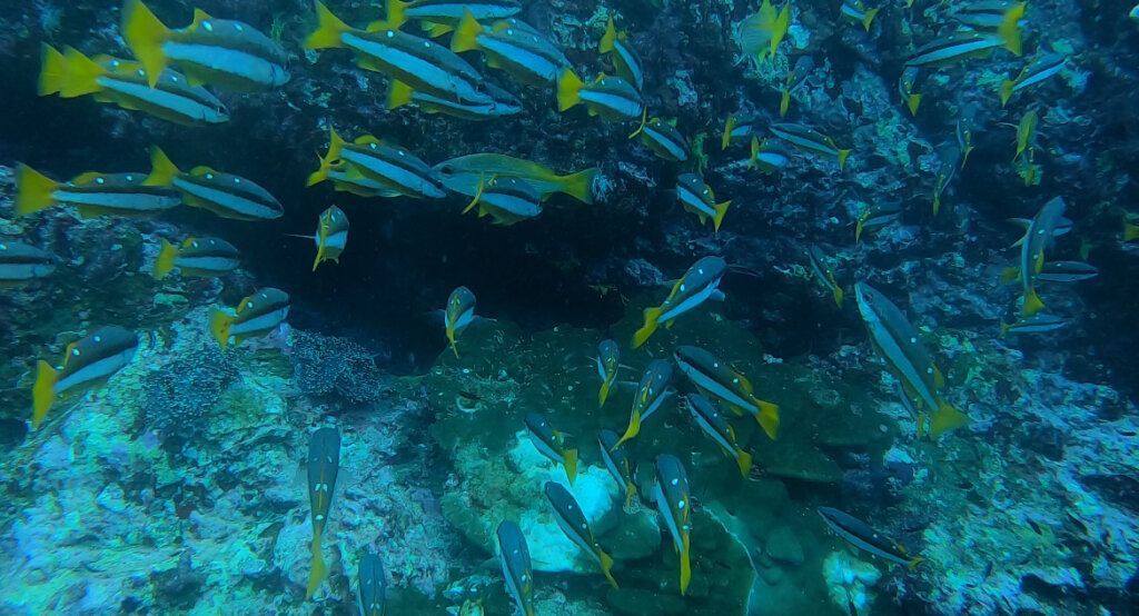 During this dive, as Annie described later, it felt like we were kicking the entire time. For me, it wasn’t enjoyable. It was the first time in a very long time (ever?) where I actually felt panicked diving. The current felt really strong, we were constantly kicking against it, and… for me, it was not a pleasurable experience. I was also worried I would get low on air much faster than the others. I wanted the dive to be over. I prefer calm conditions underwater – although a slight drift can be really fun.
