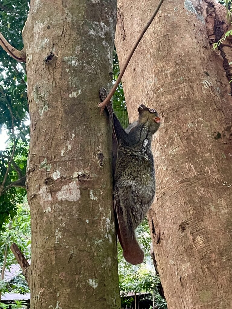 A few minutes later, the flying lemur was scoping out another tree. And then, without warning, it jumped from the tree and spread its arms, its webbing catching the air as it glided onto the tree directly behind me. I managed to capture it on film. As it was happening, Annie, a Canadian girl whom I later would talk to a lot, shouted, “No way! We DID IT! WE SAW IT!” Her excitement was infectious. Later that night, I rewatched the video probably ten times before going to bed, laughing at her narration every time.