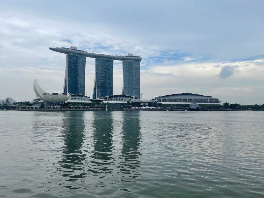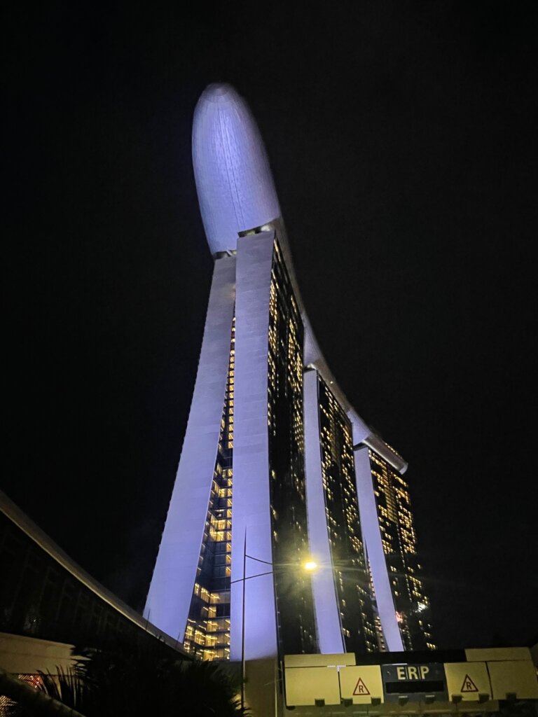 The Marina Bay Sands was the first building I saw, since it was right next to the subway station. Three towers with a “boat” on top of it. How crazy!