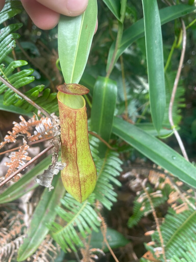 The trails around MacRitchie circle around the reservoir in a very large loop. I ended up doing about half of it on that first visit. The first section was a boardwalk that lined along the water’s edge. I kept my eyes peeled for water snakes and pit vipers, but didn’t see any. What I did see, and only ONE of them, was a wild pitcher plant! I’ve never seen one before.
