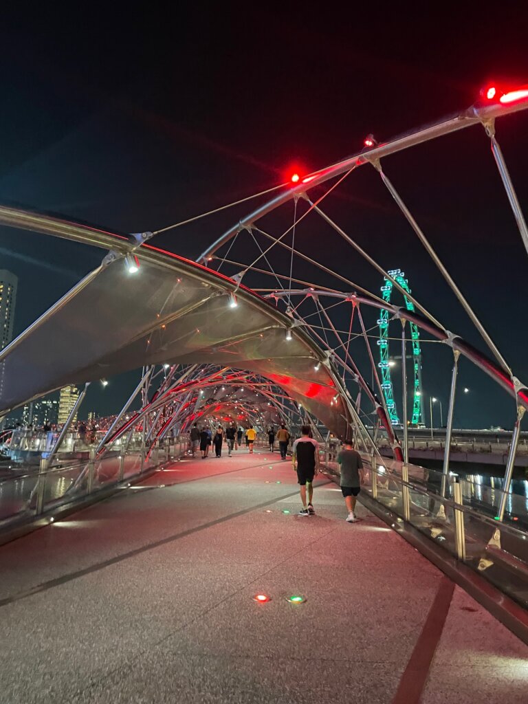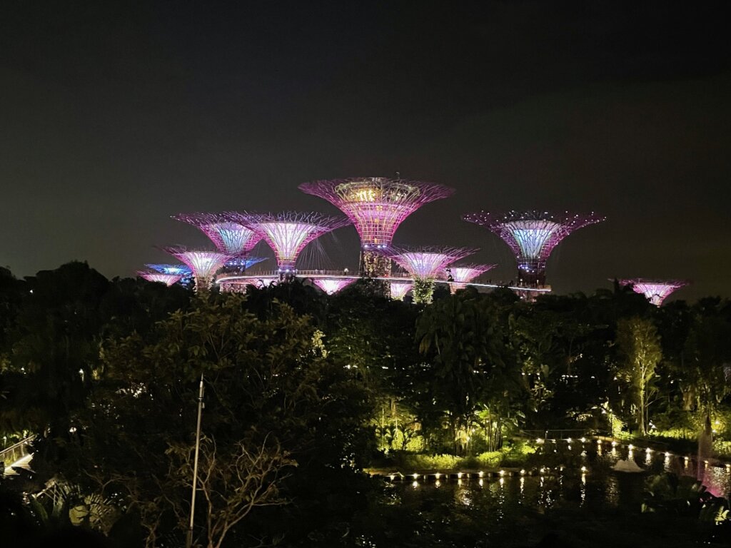 My first stop was to check out the Supertrees because I’d heard they were lit up at night. As I got to the viewpoint, I noticed people were kind of standing around. I wondered if maybe there was some kind of light show that was scheduled to happen? Sure enough, ten minutes later, it started. Music began to play (the Jurassic Park theme lol) and the Supertrees began lighting up in sync with the music. What a cute experience – and I didn’t even know about it prior to arriving there!