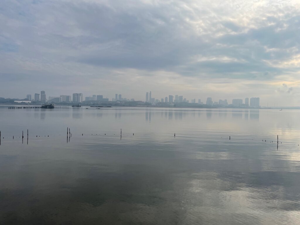 Sungei Buloh is supposed to be a hot spot for wildlife – and there have been frequent sightings of king cobra there. King cobra aside, its a bird haven, with many migratory birds coming to the area. Beautiful kingfishers, otters, crocodiles, etc. Lots of potential here! And it’s right at the border between Singapore and Malaysia. In the early morning haze, I could see Malaysia across the water. How cool!