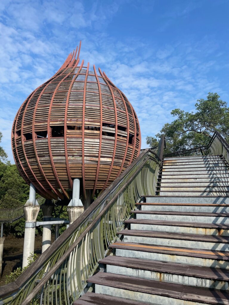 There was much to explore at Sungei Buloh, so I continued my walk. I made it to an onion-shaped hide, serving as a bird-watching space. Many crows were hanging around the area until I arrived. Then they scattered.