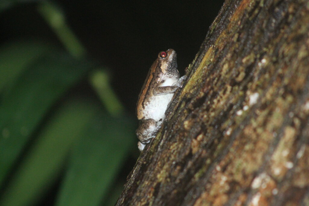 I entered the boardwalk and began walking very slowly throughout the area – scanning for mangrove vipers or other nocturnal snakes. My first boardwalk sighting was… a bullfrog! What a weird looking dude.