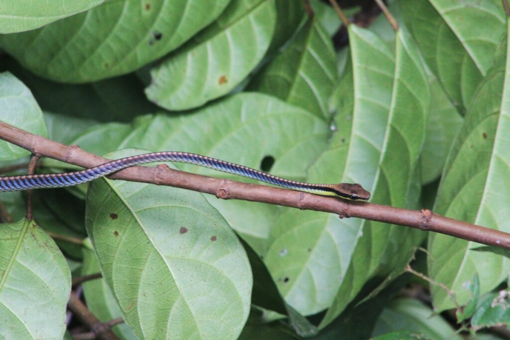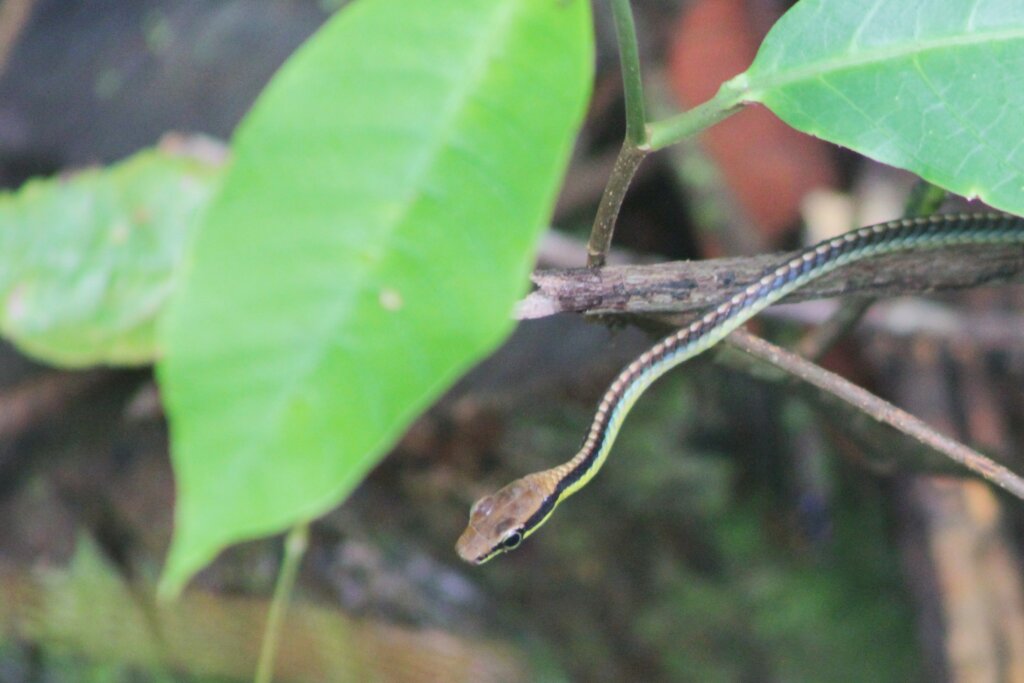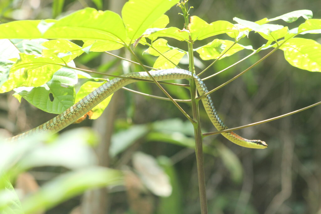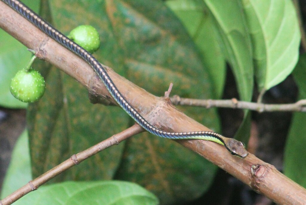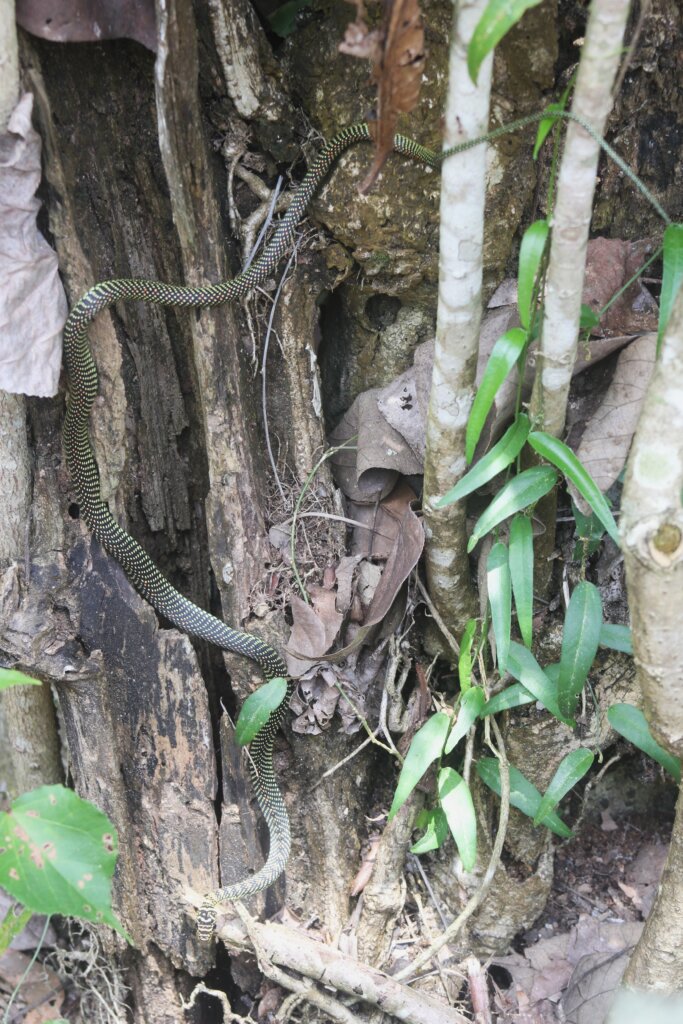 OMG! A paradise tree snake! I had been hoping to see one of these the last couple of days, as they were supposedly somewhat common. I’d never seen one before. One of the things that’s special about these guys is that they are regarded as “gliding” snakes. They can flatten their bodies and glide from tree to tree if needed.
