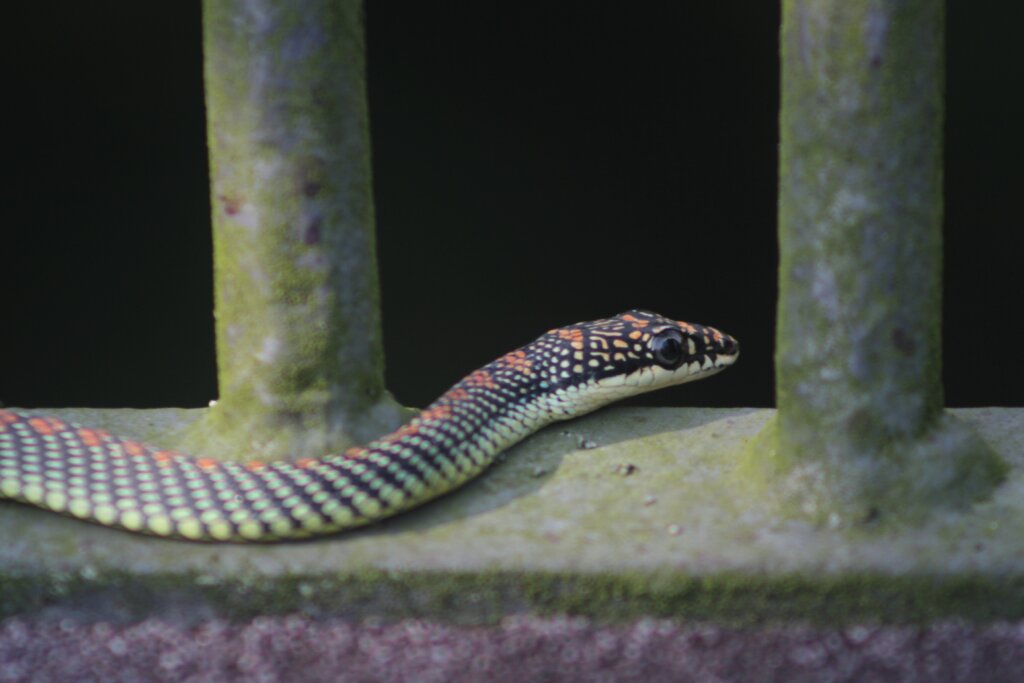 This snake was so silent, as are most of them. I couldn’t believe it was just right next to me, slithering between the panels on the wall, searching for small lizards to feast on.