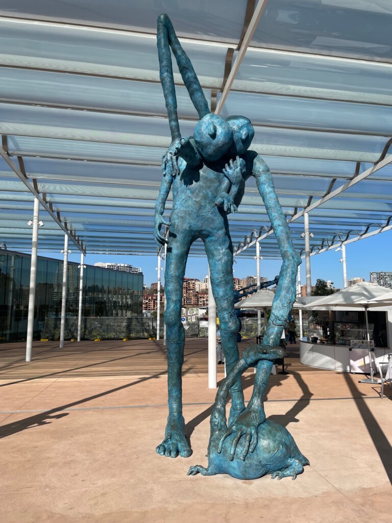The following day, I had plans to meet up with my friend Thomas whom I had met in Tasmania. He had recently moved to Sydney. We met up at Town Hall and walked around for a while. We ended up cruising through the botanical gardens, having lunch at Breadtop, and walking around the Opera House again. We didn’t have a particular destination in mind – we were busy catching up and wandering along. At some point, we stumbled upon a little square that had a number of beautiful sculptures on display. Francis Upritchard is the artist.