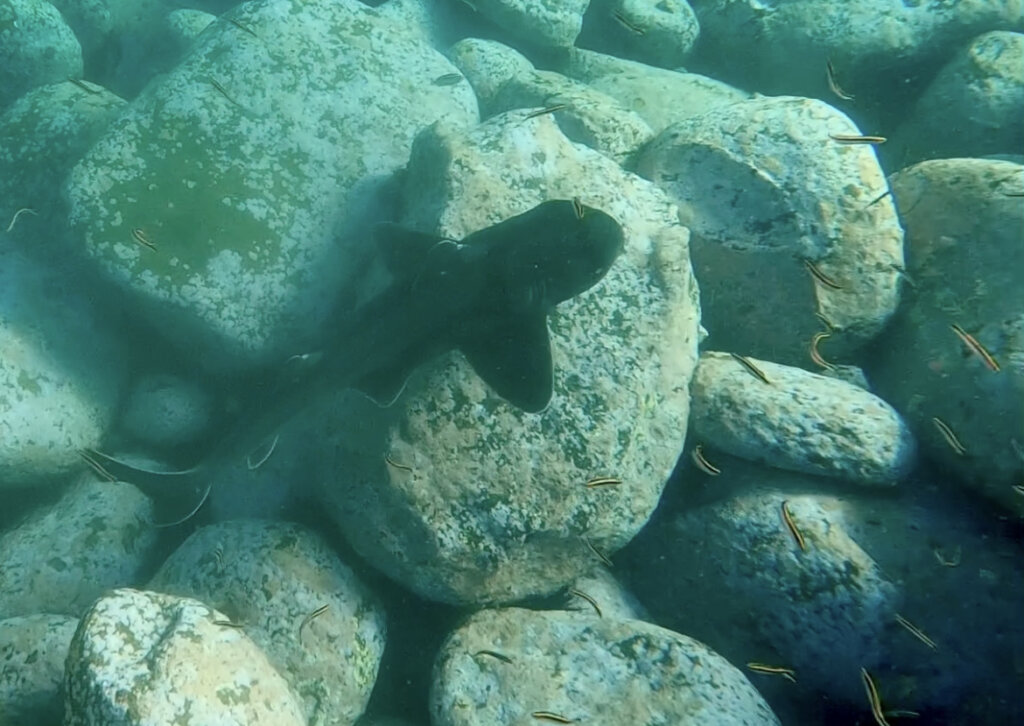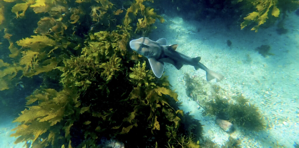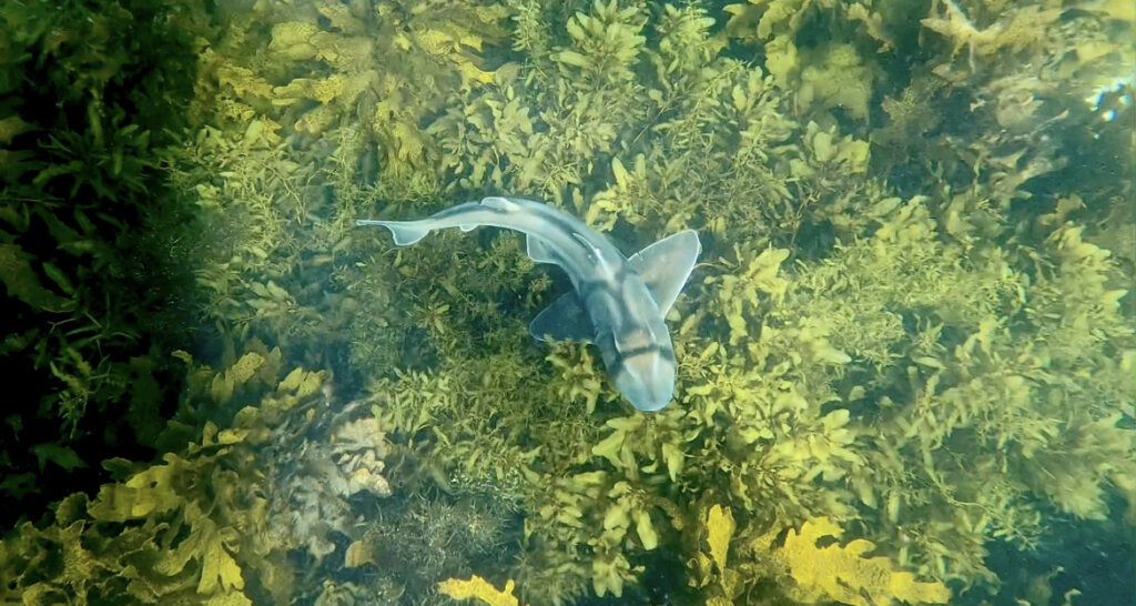 While it is easy to be entertained by marine life, it was only a temporary distraction from the frigid waters. After some time, I started to make my way back to shore. But then along the way, I spotted… a Port Jackson shark.