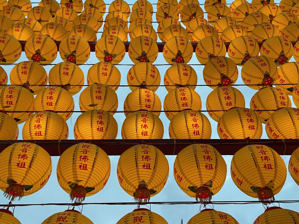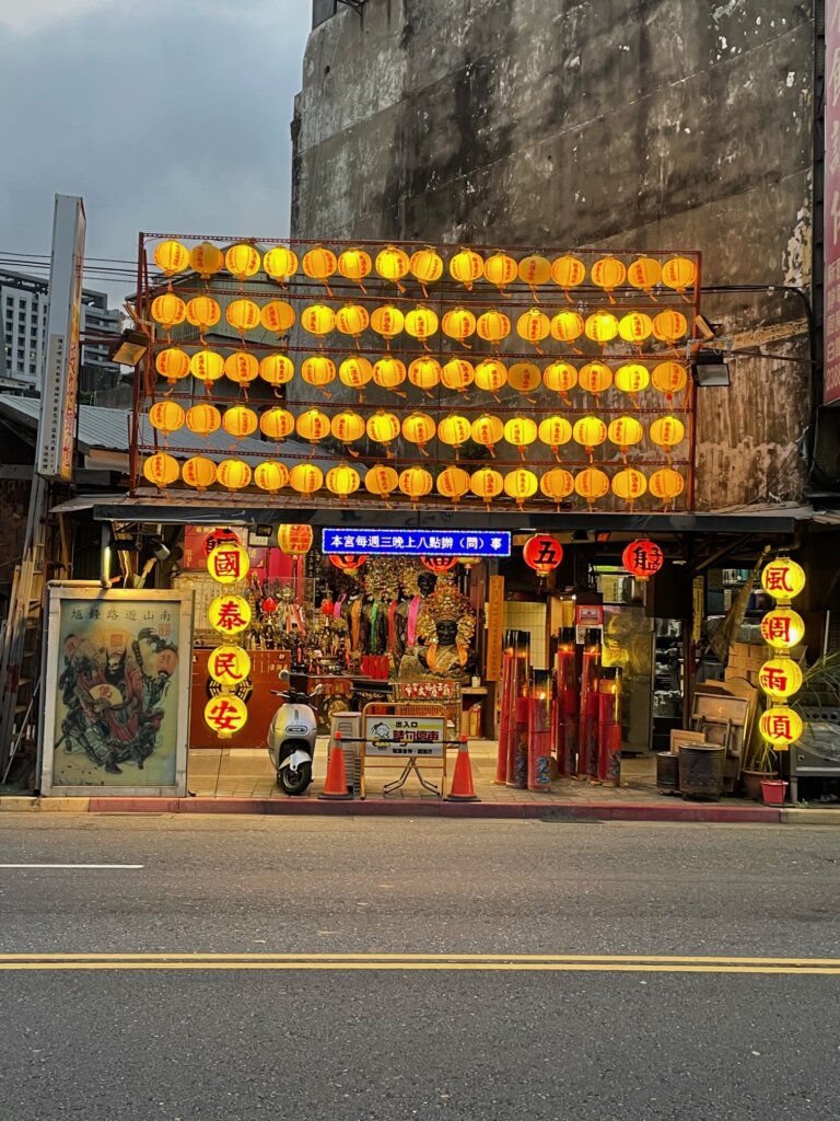 People were able to walk around the temple. I noticed once I’d entered that a number of people seemed to be in prayer and were throwing what looked like stones on the ground. I later asked my friend Jasper if he knew what that was about. He explained that what they were throwing were two crescent-shaped blocks of wood. People pray for guidance and then throw the stones. If they face the same way, it means bad decisions. If they face opposing directions, it’s a good decision and approval from God. Cool! I also want to note that Jasper, who speaks Mandarin, helped me out with a few phrases during my time in Taiwan. Ni hao, which means “hello”. Xie xie, which is “thank you”. And bu hao yi si, which is “excuse me”.