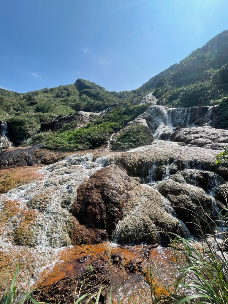 After dropping my bags off at the hostel, I walked through Old Street and got myself a bowl of Taiwanese meatballs. I did one lap around the area, but knew I would be coming back later (when there were less tourists), so I veered off on another adventure. I had looked up attractions nearby and saw there was something called Golden Waterfall, and something else called the Yin Yang Sea. Count me in! And so I began my descent down the mountainside, navigating through winding streets on foot.