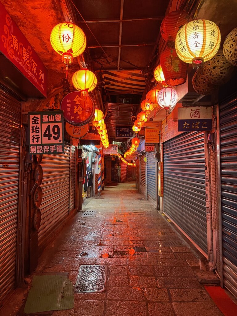 Sidebar aside… I chilled at the reception couch at the hostel for a little while, just to kind of decompress from the flight, and then went for a walk in the neighborhood. Sometimes I’ll just book a hostel and have no idea which neighborhood it was in. I realized after booking the first three nights that where I was staying (Datong District) was super far from the Taipei 101 – which is the Taipei World Trade Center. I wanted to be close to it but it was really far away in terms of walking. I snuck some glimpses of the tower that first day, but was wondering if I made a mistake by booking the hostel location that I had. In retrospect, I’m so glad I stayed where I did. There were so many different alleyways, with random food market stalls tucked away. There was a kind of gritty charm to the area. And it was only ten minutes walk from the Ningxia night market, which was one of my favorite parts of Taipei.