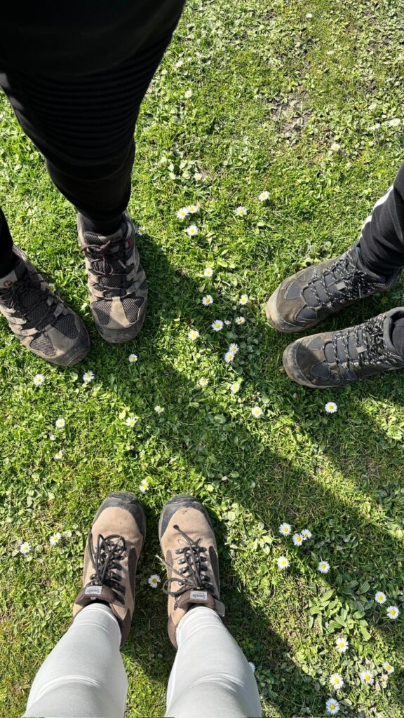 The path was maybe only ten minutes. We walked through muddy farmland, dodging sheep shit along the way. A bird fluttered above us, flying practically in place. I think it must have been calling to its lover. I had never seen a bird just hover like that – it certainly was waiting for something.