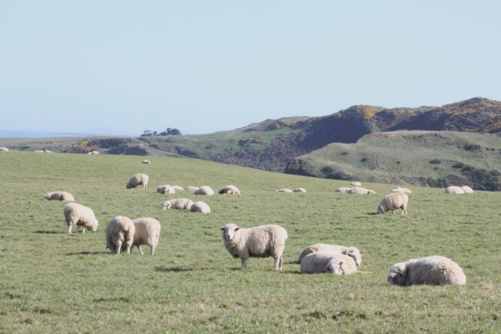 Upon arriving, we got out of the car and entered farmland. There were sheep blanketing the landscape. A majestic view, with green hills and the ocean just past them. Oh, to be near the ocean again. I love it so.