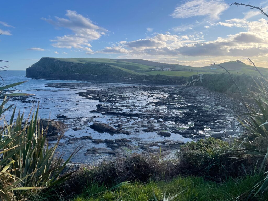 Curio Bay had a “Penguin Walk” which was a little trail that had a fence with built in viewing points. There was also two lookout sections to watch the penguins as they came in after a day of fishing. It was still a bit early, so we went back to the Petrified Forest. At this point, the tide had really gone out and we had a great view of it.