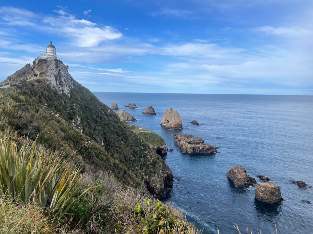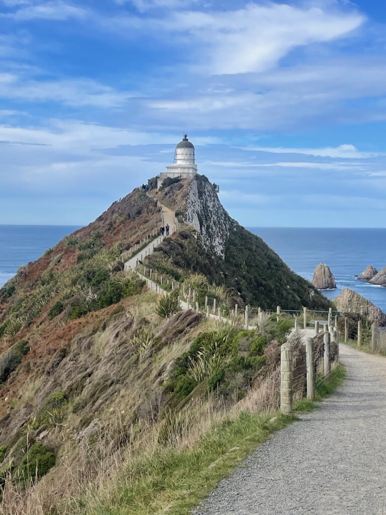 After the falls, we began driving to Nugget Point, but needed to fill up on gas. The Catlins is sort of in the middle of nowhere, so there aren’t many amenities around. We had planned to get gas at Owaka… but there was only one gas station and the pumps were closed due to a power outage. We could see the workers repairing the power lines lol. Wild. Luckily, we had enough gas to get to Nugget Point and then to another gas station. Otherwise… we would have been in trouble.