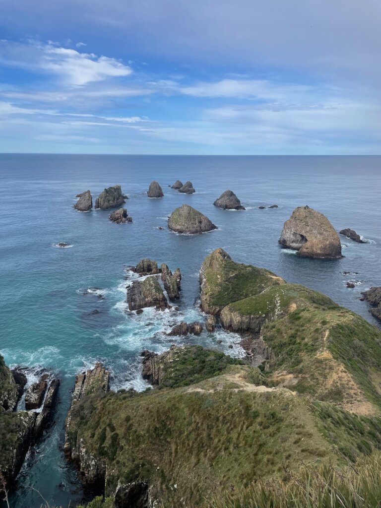 As we neared Nugget Point, we started driving right next to the ocean. I kept my eyes peeled for seals and sea lions, but didn’t see any. We got to the parking lot and began the hike. The area was so gorgeous. It was a tall peninsula reaching out to the sea. We walked down the middle of the peninsula and had ocean on either side of us. The views were surreal.