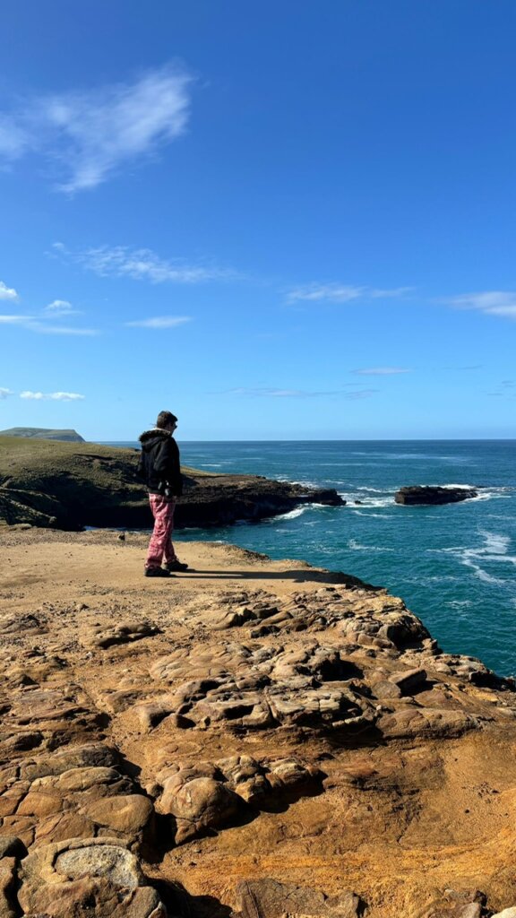 It did feel a bit like the edge of the world. We were at the edge of a cliff, with ocean waves lightly crashing onto the rock shelf below. And then… nothing.