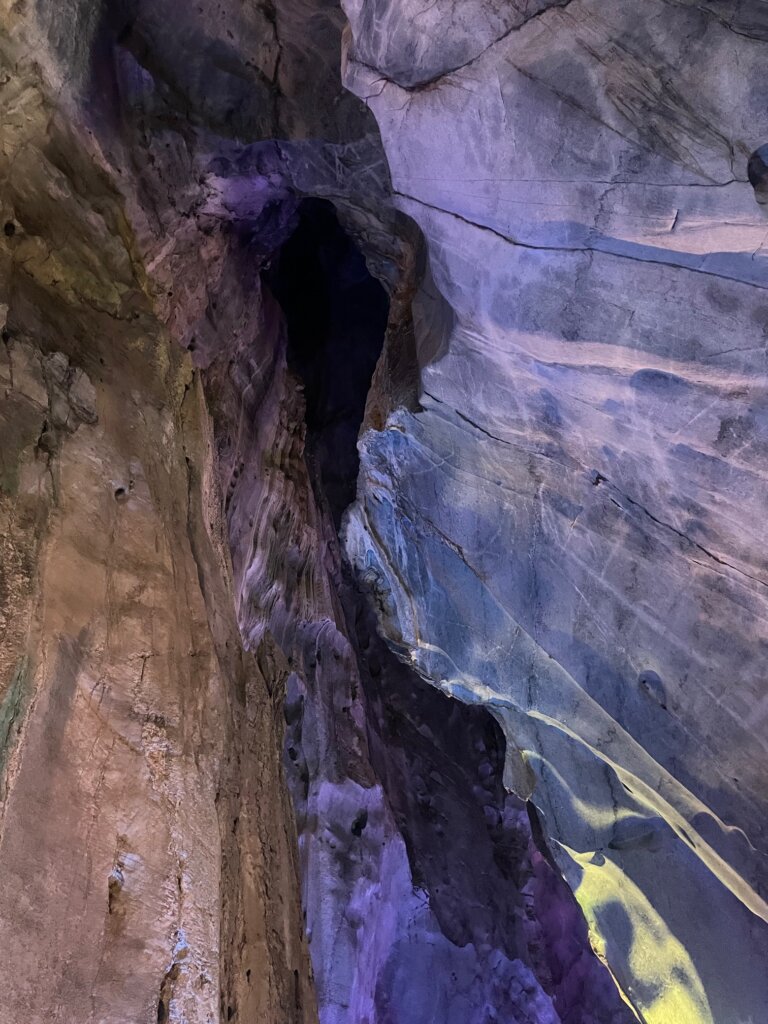 Looking up, you could see various holes in the cave walls. But the temple was used for actual worship. There was a devotee who was pouring what looked like flavored milk over the statues, then cleansing them with water, then pouring a different colored liquid over the statue, then water, etc. It was cool to watch.