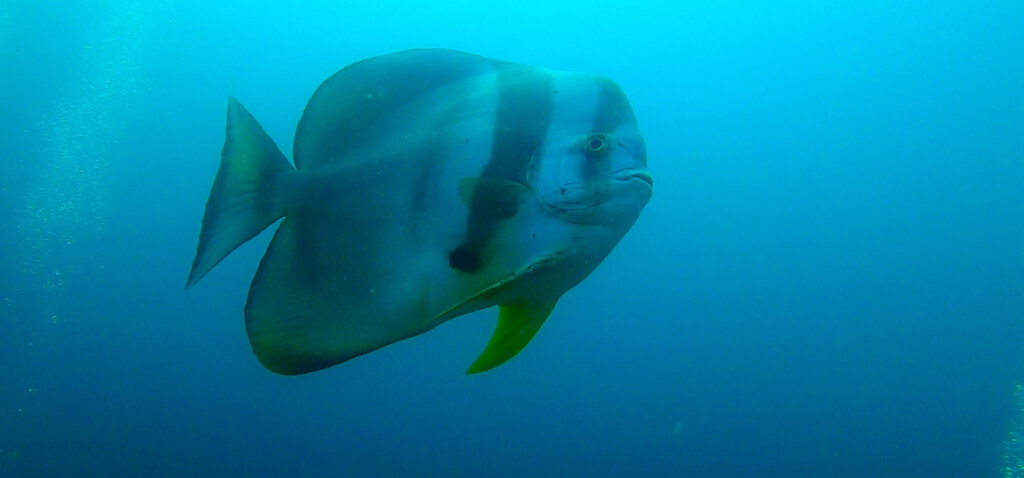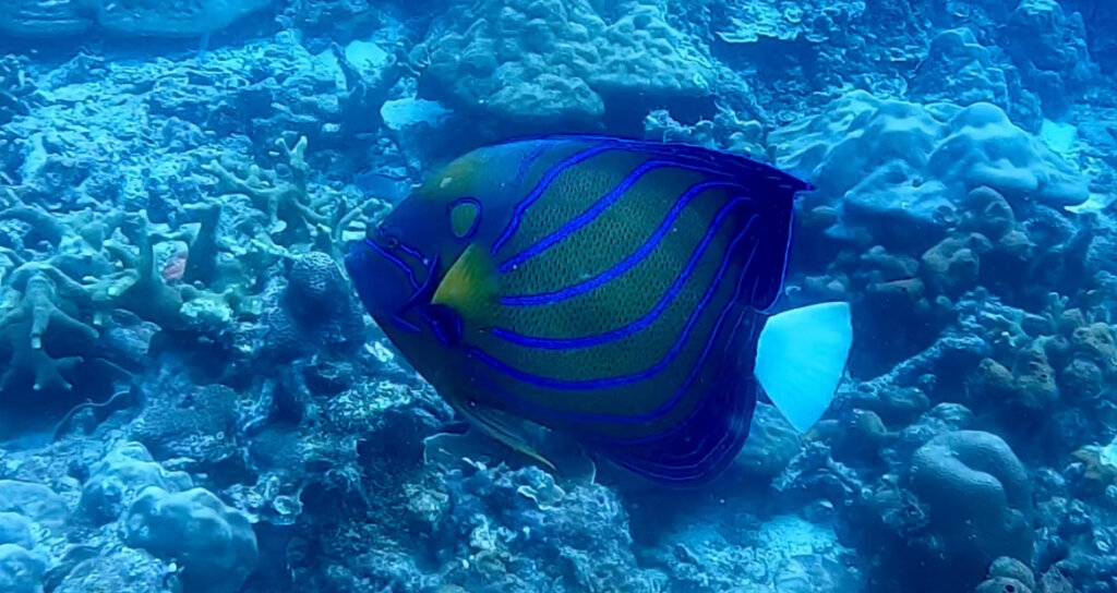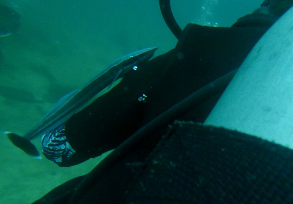 One wildlife sighting that really tickled me was seeing the remora, which is a suckerfish that is often seen hanging out near sharks. They clean parasites off their hosts, etc. Anyway, the remora was swimming around the divers and kind of attaching to their diving tanks and swimming around their bodies. I even had it attach to me for a little bit. I tried to get the guide to take a video but my GoPro was having issues and wasn’t able to get a good one. I did manage to get a screenshot of it on me though (below) haha.