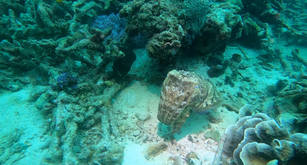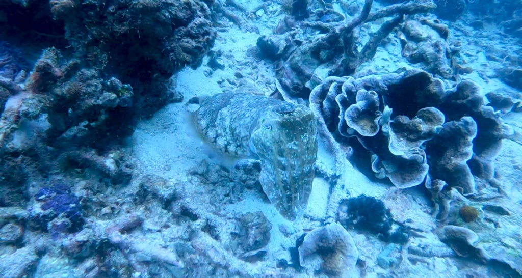 The greatest sighting of them all came maybe five minutes before our dive was up… and that was of a cuttlefish. Ben spotted it.