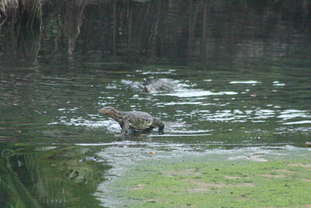 I actually saw one massive lizard chasing after another one that was… also very large, in the river. Scary things. One of them was even next to the stairs outside my dorm room haha. EEK!