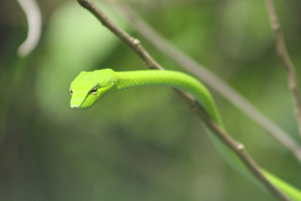 Another day, I spotted an Asian vine snake during the day time. That one was a MUCH more vibrant shade of green – pretty similar to the one I’d observed in Cameron Highlands a week and a half prior. While I’d seen Asian vine snakes during the day twice before, this was the first time I actually had my camera with me so I was delighted to get some half-decent pictures of it. Yay!
