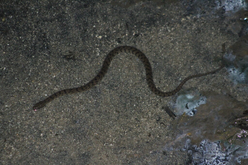 On my first night, I didn’t venture too far. I didn’t know where all the trails in town were just yet, so I just walked to a boardwalk that overlooked a small river strip. And, guess what? I spotted a snake in the water maybe 20sec after shining my headtorch along the river. But it was so fast and I couldn’t get a picture. DAMN IT! I continued to walk for some time but then returned back to the river. It was there again. Success! (As an aside, I actually was so annoyed that I wasn’t able to get a picture of it at first. I was like, ugh, now I’ll never be able to know what type of snake that was! Only to see them basically every subsequent night at the river. Calm down, Steven.)