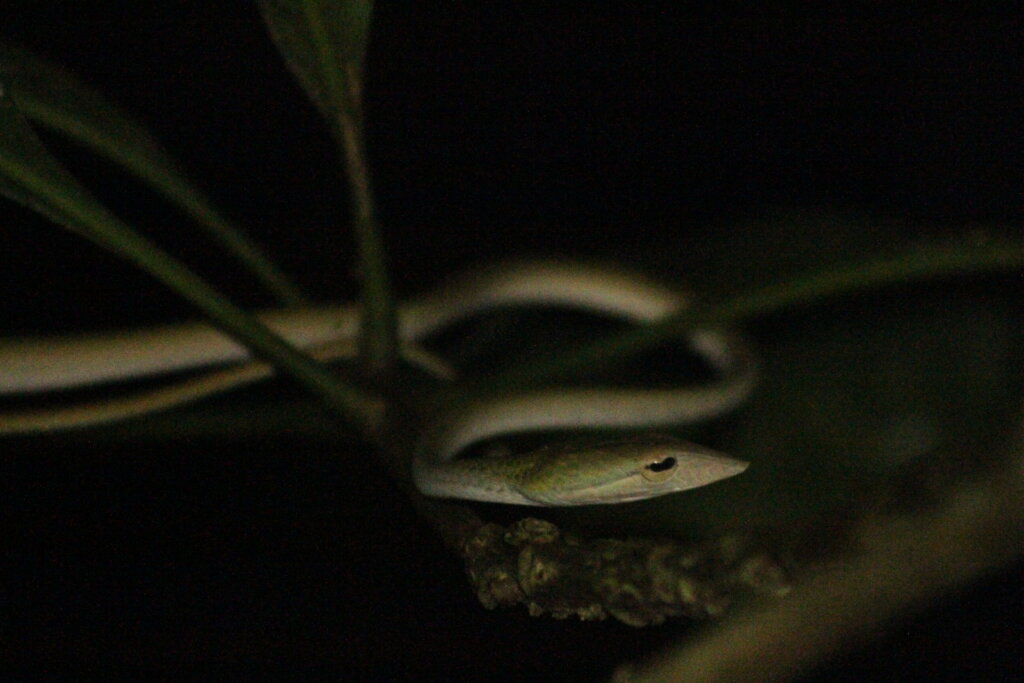 On the second night that I returned, I spotted… an Asian vine snake! It was very slender and was resting on some twigs. I snapped a couple of pictures and it got annoyed, slithering deeper into tree branches. Sorry, buddy. I was pleased to spot it, though. I spend so much time looking for wildlife and, yes, I know, I’m obsessed with snakes, so when I do see one I get really excited. (P.S. this is the first time I’ve seen a vine snake that isn’t a super bright, vibrant green. This one was much more muted, almost greyish green.)