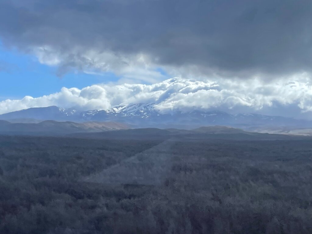 It was cute to see all the sheep grazing on the hills. Some cows. Even some deer farms from the look of it. My biggest surprise was seeing… SNOW. We passed by Tangariro National Park which has three active volcanoes with snow along their peaks. (Please note, when I say active, it doesn’t mean there is molten lava exploding from the top. It’s just that they are still active below the surface and not dormant or extinct.) I think it was the first time I’ve seen snow in a year and a half!